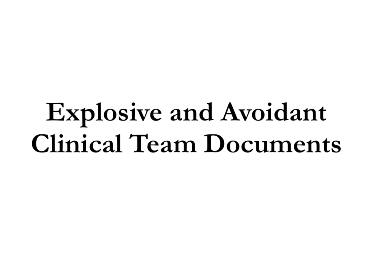 Next Explosive and Avoidant Clinical Team Documents by remindingvt March 15, 2019 Uncategorized Explosive and Avoidant Clinical Team Documents The Treatment of Explosive and Avoidant BehaviorClinical Team MeetingRecovery Assessment WorksheetsShort Form Weekly Data Tracking Sheet Related